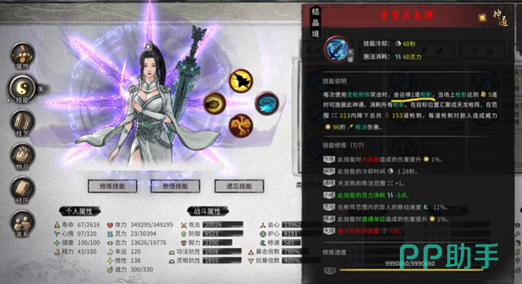 逆天改命方面,核心在于围绕暴击和技能循环展开。推荐选择“杀心骤起”,它能让冥羽玄鸟的暴击为绝技充能,实现高频次的技能释放。此外,“凝元寂灭”和“天地同寿”也非常适合龙枪流派,分别提供高额输出能力和生存保障。如果宗门逆天改命的选项较为一般,可以选择“七星剑瀑”或“悬乎御妖”等灵活辅助型能力,进一步提升技能连贯性。