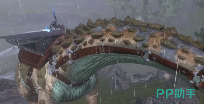 当泰坦龙的生命值降至一定程度时,玩家需迅速使用特殊的驯服道具来完成驯服过程。驯服后的泰坦龙不仅拥有超高的承载能力,还能够用作移动战争堡垒,其平台鞍具可以搭载建筑,成为玩家探索和战斗中的终极利器。然而,泰坦龙的驯服状态是有限的,驯服后它的生命会逐渐流失,直到最终死亡,因此驯服泰坦龙更多是为了短时间的绝对战斗力,而非长期陪伴。