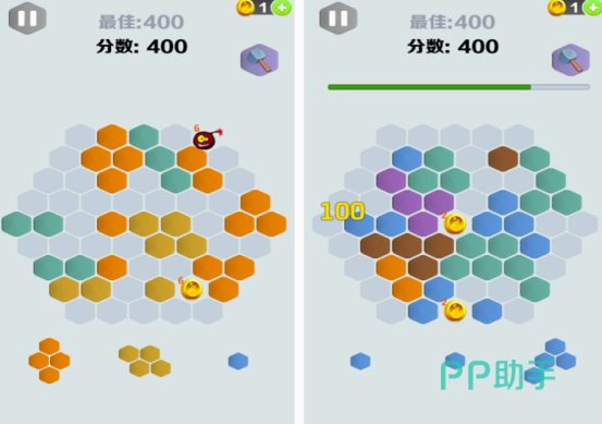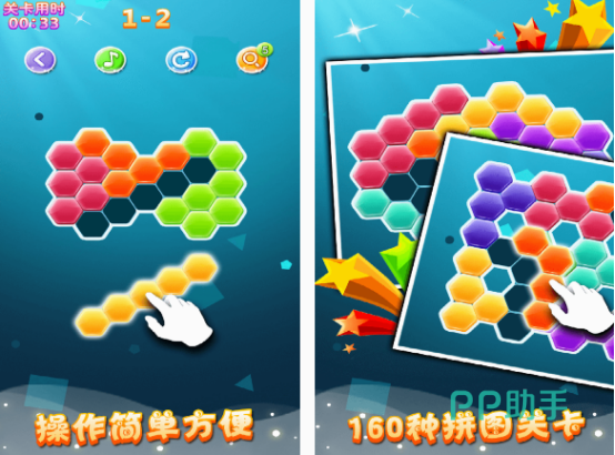 这个叫做六边形方块的游戏以后,可看到它每个关卡中都是以六边形为主的,你需要在显示的小方块中利用自己的智慧拖动其中,就能获得不错的成绩。给大家提供了三种模式,无论是比较经典的还是炸弹、生存的模式,你都能感受到游戏所具备的趣味性。尤其是炸弹模式,你要在规定时间内消灭,才有机会取得胜利,不然的话游戏就会挑战失败。