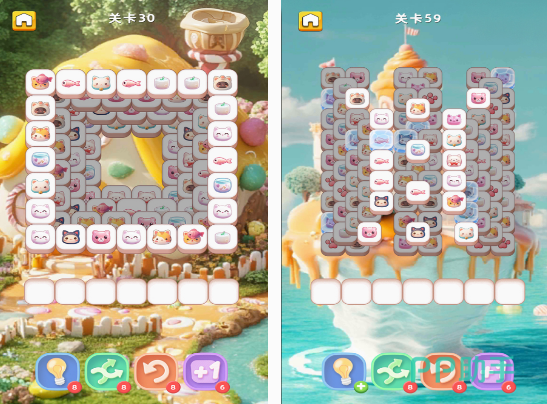 无论是在三消游戏中以哪种玩法或者是图片为主的,都是老少皆宜的。介绍的这款单机小游戏,给大家设置了诸多的关卡,都是以小猫咪图片或者是与这种动物有关的食物,每个关卡中都会有不同层数以及设计的玩法,你需要及时的观察,利用将能消除的图片拖到设置的方块里面就能进行消除,涵盖诸多的道具,支持撤销等操作。