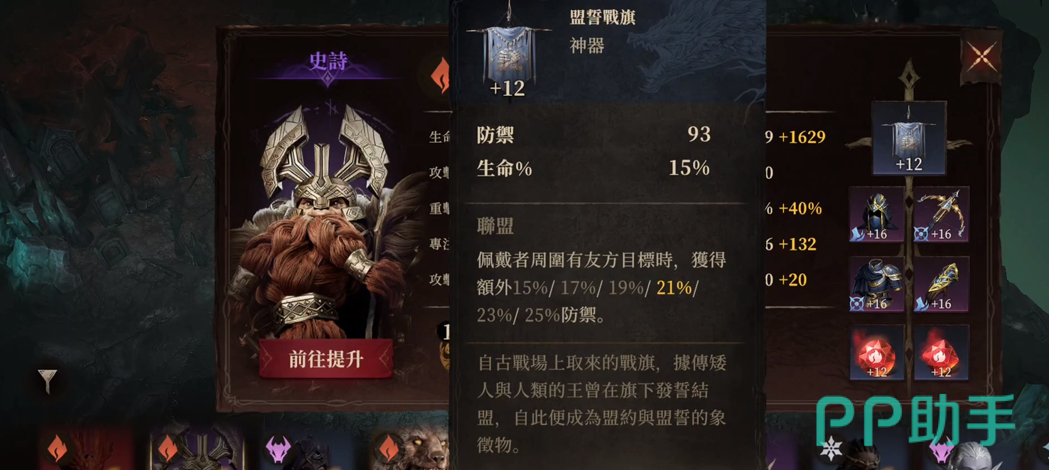 荷鲁斯:荷鲁斯(俗称火矮人)是团队中的主坦,主要职责是承受伤害。装备推荐使用盟誓战旗,能够为自身和队友提供范围性的防御力提升。作为坦克,他的重点是提升防御属性,以确保在副本中能为队伍提供足够的保护。