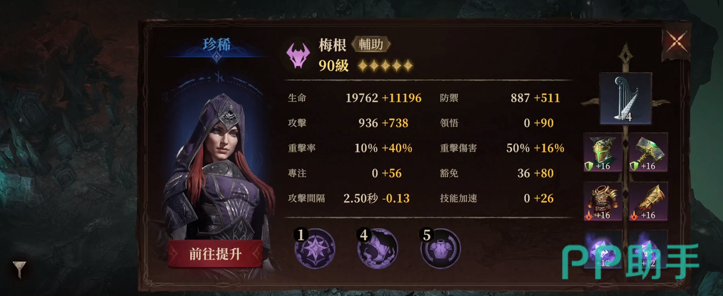 梅根:她作为回血辅助,在阵容中扮演非常重要的角色,最好能升到五星。需要注意的是,梅根的防御力必须有所保障,防止过早被击倒影响续航。装备上建议添加一个技能加速装备,以确保她能够跟上战斗中的治疗消耗。她的回血技能速率非常重要,决定了全队的生存能力。