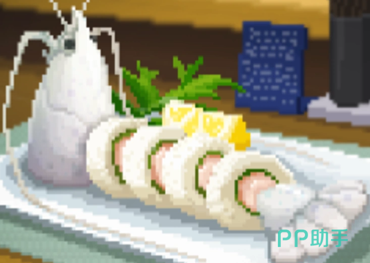用它制作的水晶龙虾卷,可以参与季节性活动“龙虾派对”,需要2个水晶龙虾、2份米饭、2个海藻。水晶龙虾寿司,也是可以参加龙虾派对,原材料只需1只龙晶龙虾。