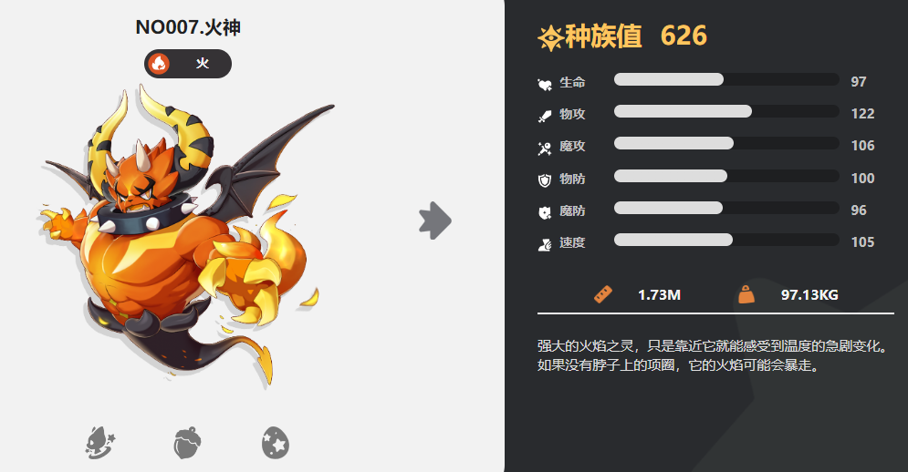 由于是偏防御类型的精灵,所以我们平常在搭配其他战斗精灵时,最好选择其他输出型精灵。例如大家所特别崇拜的火神,就是一个强大的火属性输出精灵。可以提升15点火系技能的威力,然后其他火苗技能也可以造成火属性伤害。