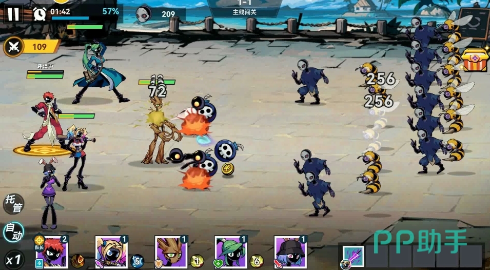 火柴人风格的PVE闯关游戏,大伙最多可将五名角色编入阵容并让它们上阵作战,每名角色都在技能和攻击特性上有着自己的特色之处,只有合理地将他们搭配在一起,让各职业的角色能互相为对方带来加成,才能更轻松地闯过更多的关卡。该作同时还有着很方便的养成玩法,除去推关获得的资源外,人们还能通过挂机所带来的收益来提升角色。