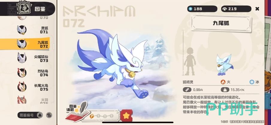 游戏中的精灵会有属性的分别,在作战的时候可以利用属性来进行克制,在探索玩法中也有可能会利用到精灵的属性,今天要介绍的精灵就是属于火属性的精灵——九尾狐。洛克王国手游九尾狐怎么样,游戏中的精灵除了能在战斗场景中进行作战之外,也能作为玩家的坐骑来帮助玩家快速位移。
