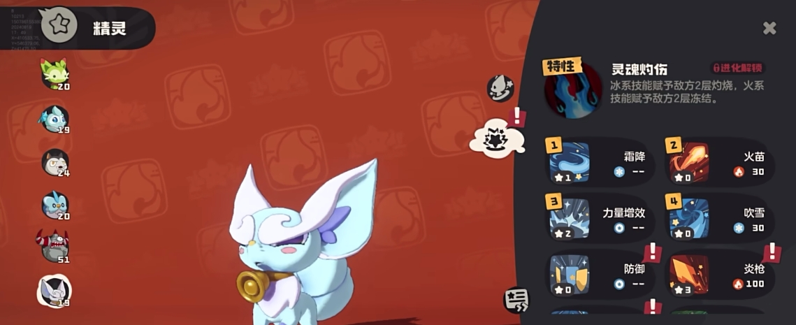 九尾狐作为一只火属性宠物,在面对草属性或者冰属性的敌方精灵时具有克制优势,九尾狐拥有多种强力技能,能够在战斗中发挥重要作用。其主要技能包括: