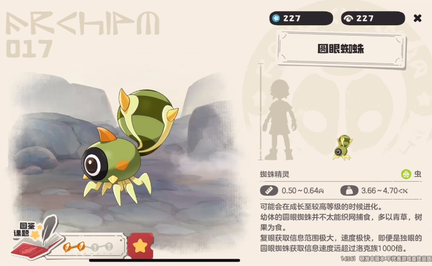 5、圆眼蜘蛛:这个精灵会出现在亚特兰蒂斯,玩家需要先解决它周边的野怪才能有机会捕获它。这个精灵的特点是外形很有特点,拥有暗喜技能,是比较出色的攻击型精灵;