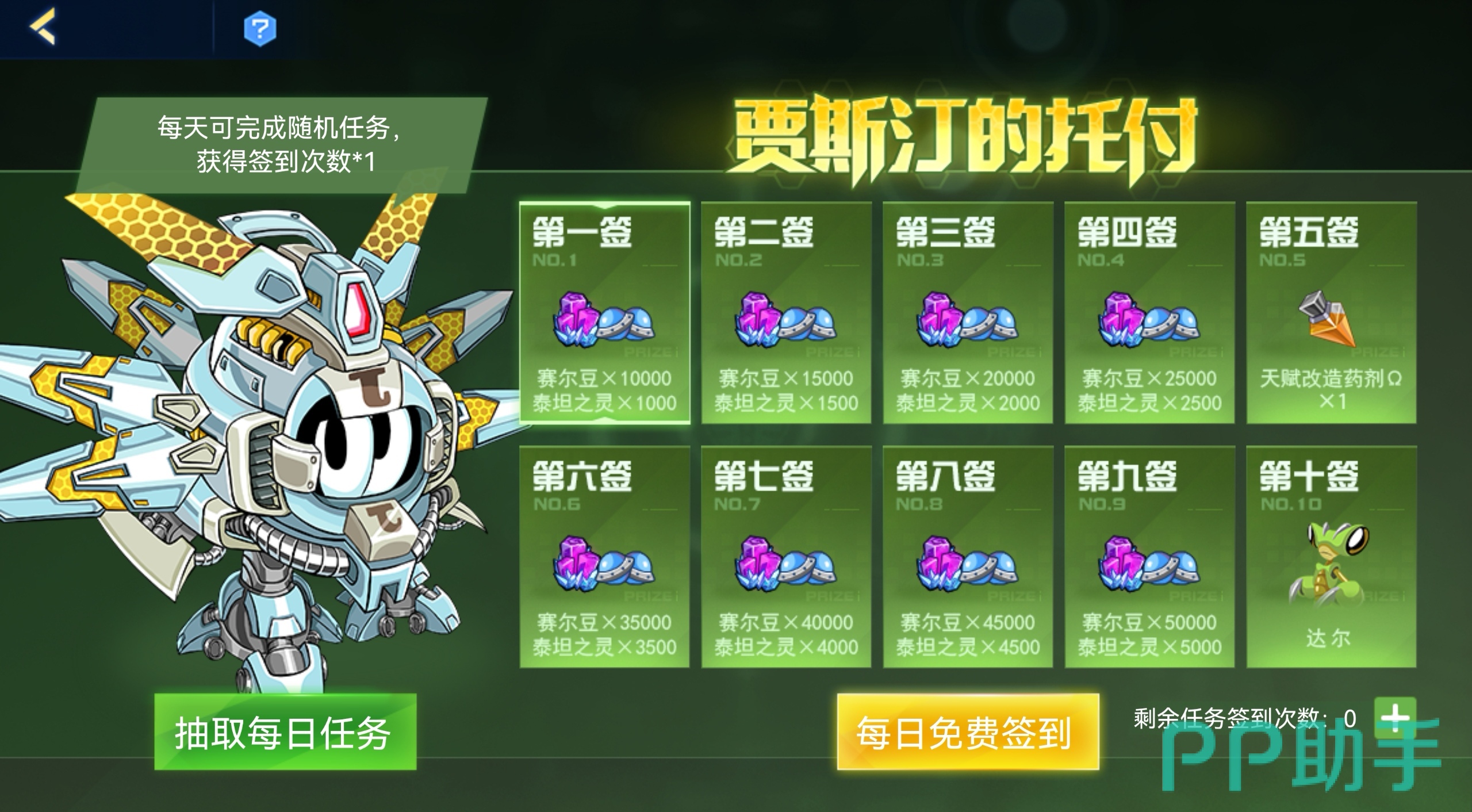 聊完了这个精灵的技能后,再给大家介绍一下它的获取方法,想要得到这个角色,玩家需要先通过每日签到来领取达尔,接着再完成一系列的挑战任务,积攒到足够的能量值后,就能兑换到光之惩戒英卡洛斯了。