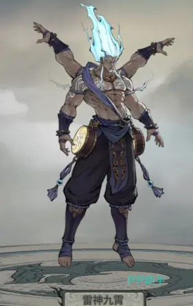 雷神其实是一个非常魁梧的多手男子,他有着4只手臂。而且有着一头犹如雷电一般的蓝色秀发,再加上十分凶猛的形象,更是让人无法靠近。作为相应的装饰,在他的腰部佩戴着两个小鼓,随着拍打之后就可以释放出响声动天的惊天之雷,让人震耳欲聋。