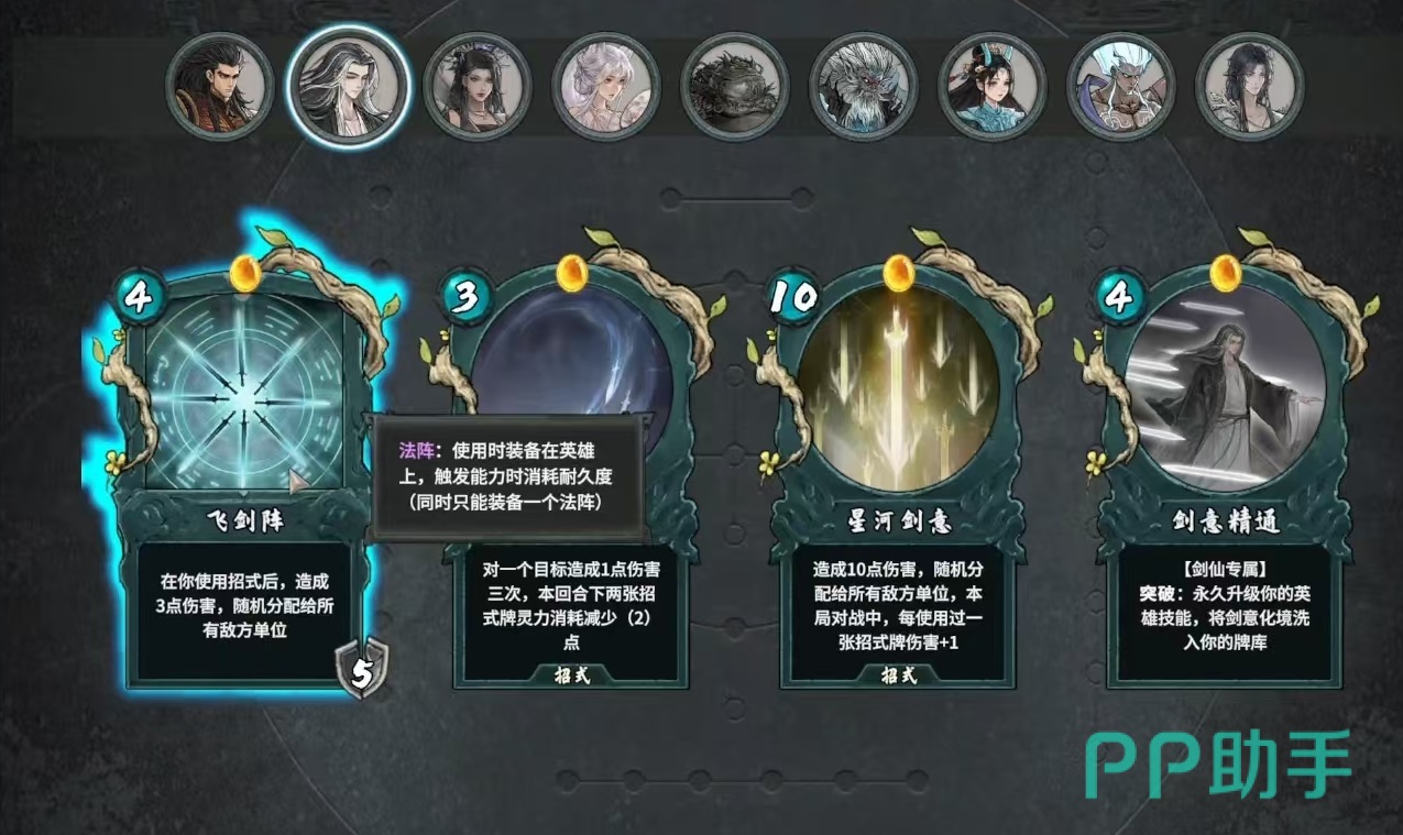 介绍完武圣之后,接下来到了剑仙,剑仙现在比较好用的本命牌包括飞剑阵、荡剑式、星河剑意、剑意精通、擎天、巨剑式、聚气化剑等。飞剑阵在使用招式后造成三点伤害,随机分配给所有敌方单位。荡剑式对一个目标造成一点伤害,连续三次,本回合下两张招式牌灵力消耗减少两点。星河剑意,造成10点伤害随机分配给所有的敌方单位,在本局对战中每使用过一张招式牌,伤害加1。剑意精通作为剑仙专属,可以永久升级英雄技能。巨剑士可以对所有敌人造成4点伤害,每消灭一个敌方单位就会将一张剑气洗入牌库。擎天可以吸收牌库最多10张剑气,每张使自身获得加1,随后对所有敌人造成等同于攻击力的伤害。可以对全体造成最多15点的伤害,是一张非常强势的卡牌,也是现在剑仙攻击凌厉的重要原因。