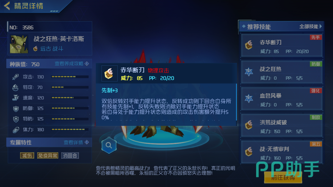 首先他的一技能叫做赤华断刀,能够双倍反转对手的能力,并提升自身状态。如果成功的话,技能先制+1,失败的话就会消除能力状态。如果处于能力提升阶段的话,伤害也会进一步提升。给予对手高额伤害时,智商也会恢复相应数值的体力。