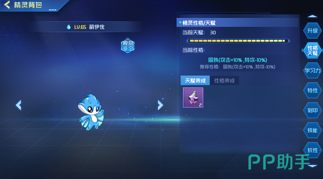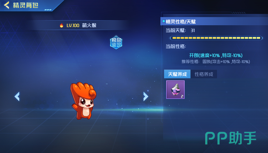 萌伊优的性格属于固执,加10%的攻击力,不过特攻会减少10%,你可以将自己积累的学习力分配到不同属性上面。一般更建议加到攻击以及速度上,因为这样能够在发起进攻并快速进行移动。如果天赋点变高的话,相应的属性也会增加。
