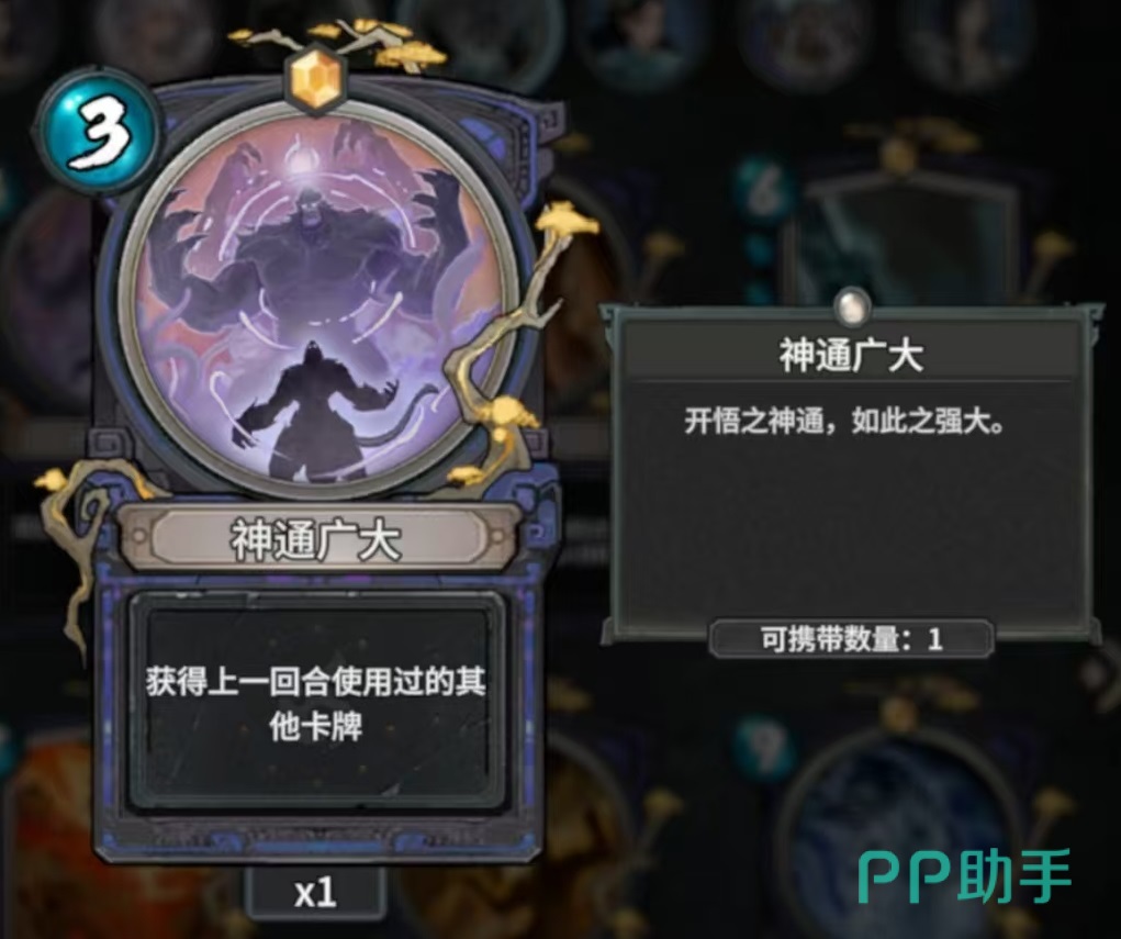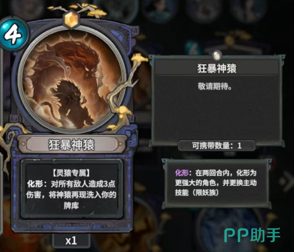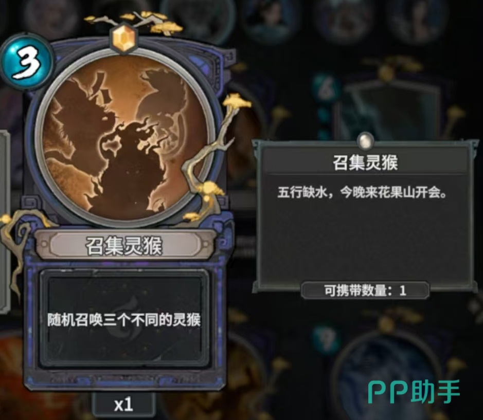 第1张牌召集灵猴,随机召唤三个不同的灵猴,因为自身需要三费,所以在实际使用的时候性价比并不算太高,但是在快攻体系中登场的次数还是比较多的。第2张神通广大,获得上一回合使用过的其他卡牌,因为这是一张补资源的卡,但是猴子的英雄技能决定了他非常适合快攻,所以和灵猿玩法并不算特别契合,那如果不想走快攻流就可以使用了。第3张狂暴神猿,属于灵猿专属,化型之后对所有敌人造成三点伤害,将神猿再现洗入牌库。