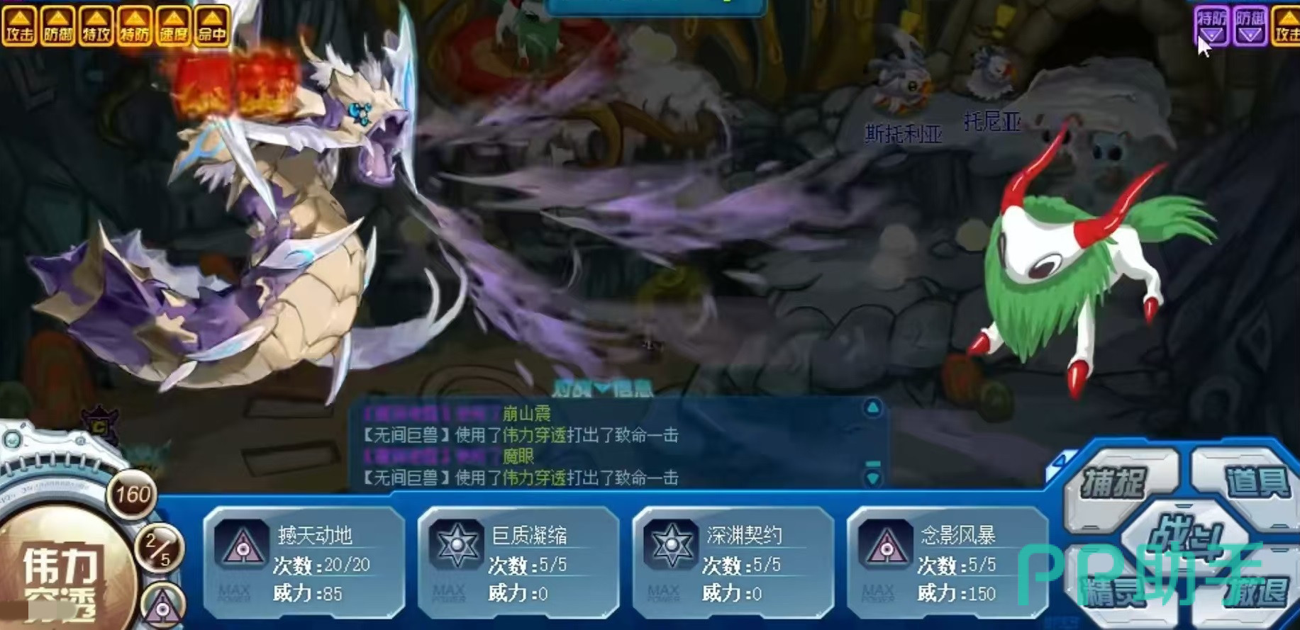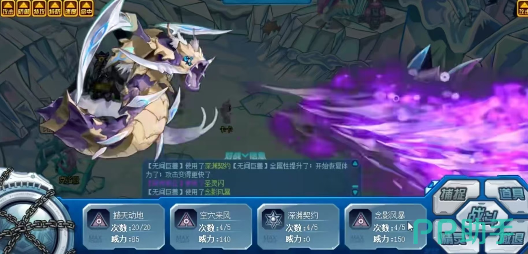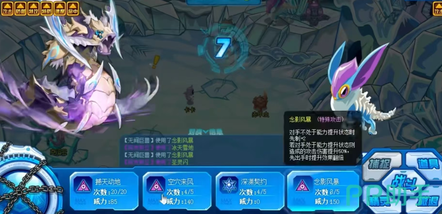 这个精灵的专属特征是,回合开始时,如果自身处于能力提升状态,那么2回合内,攻击技能必定打出致命一击杀,属性属于超能系,可以克制神秘战斗、战斗、神秘、电战斗、飞行神秘等,同是会被光次元、光暗影、次元、暗影、光、光神秘等克制。所以大家在赞助的时候,如果遇到无间巨兽,那么就可以选择能够克制的属性,各种光系精灵,例如霍夫曼等,就非常适合。