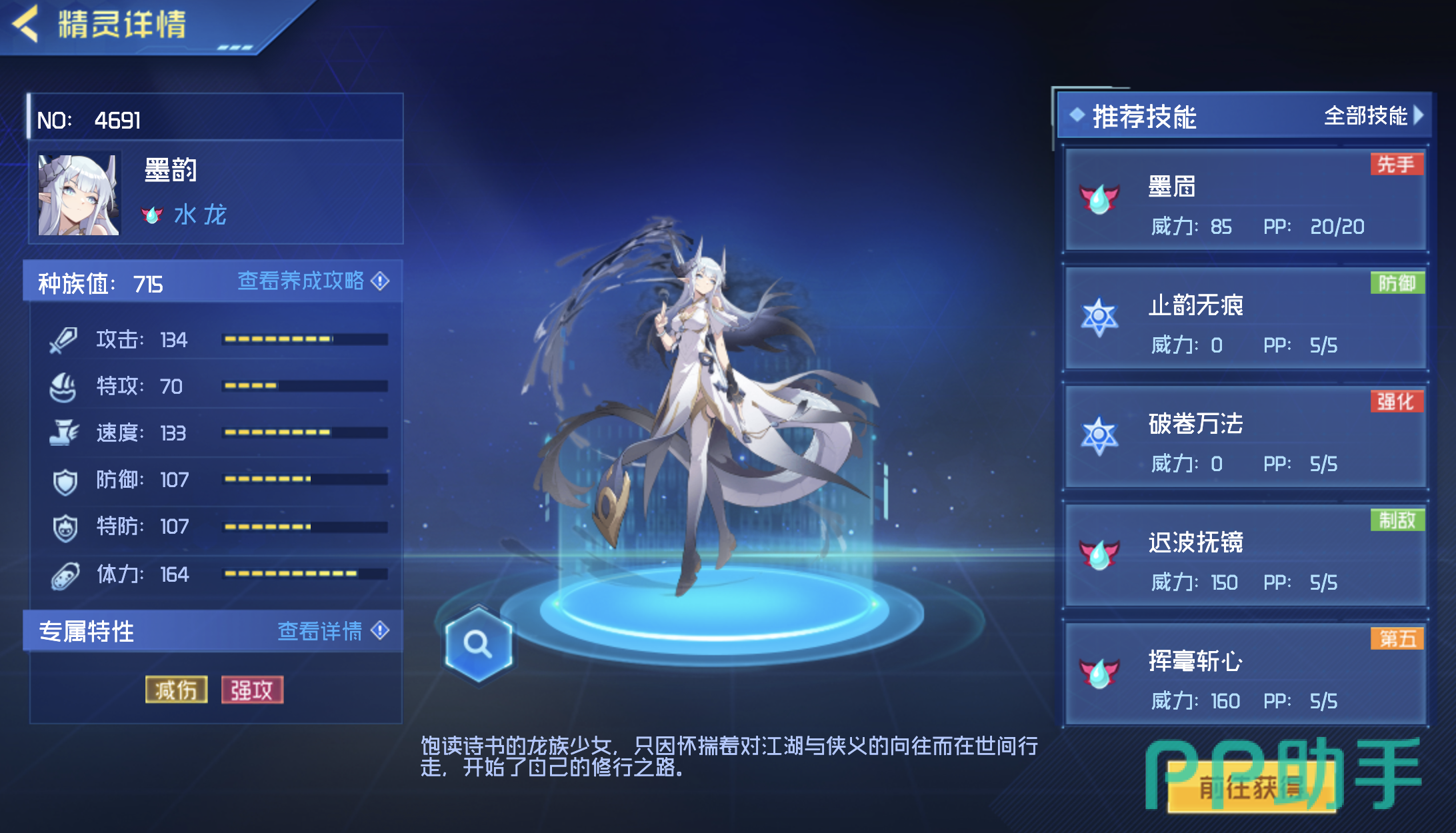 【止韵无痕】则进一步增强了墨韵的生存能力,该技能让她免疫所有异常状态,并抵挡一次攻击,同时在每回合附加固定伤害,对持久战表现尤为出色。