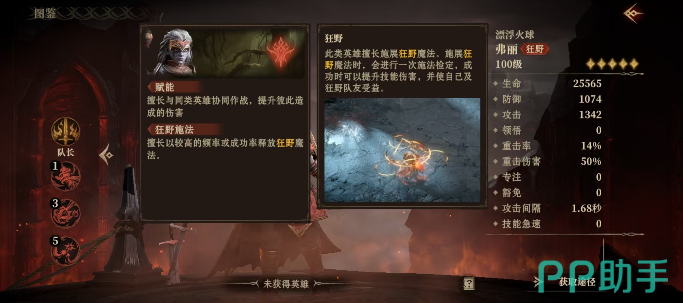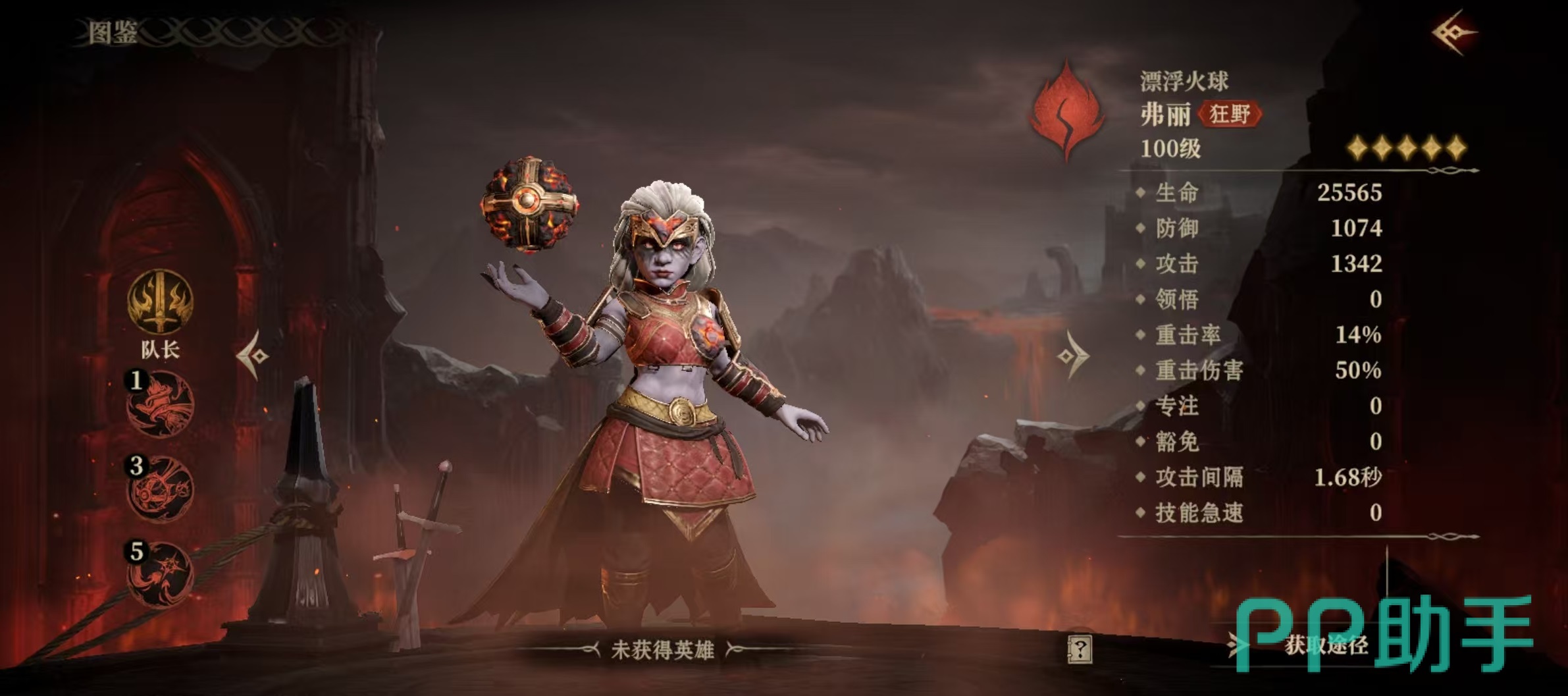 在技能方面,弗丽是具有队长技能的,带来的是重击伤害光环,所有战斗中都能生效,提升24%重击伤害,中规中矩的属性加成,并不十分推荐。被动技能难得好运,如果友方狂野英雄判定成功,那么自身下一次普通攻击伤害提升60%,且被视为狂野。战绩稳扎稳打,释放后的7秒内,自身普通攻击射出的法球数量改为两颗。威能技高风险实验,对敌方目标造成火焰伤害,该技能狂野判定成功时,对另一名随机目标释放此技能,通过该效果最多能连续释放三次。