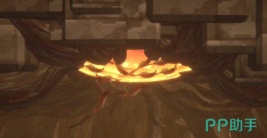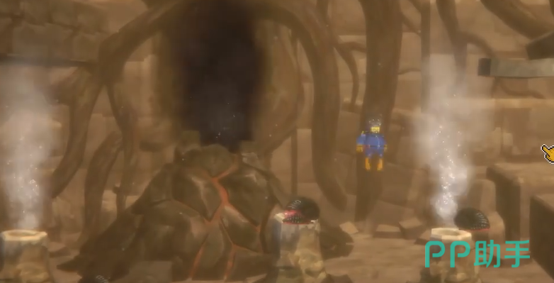 来到左侧的房间,这里的解谜需要点手速。附近有三只硬甲虫,把它们快速放到三个气口上,堵住喷出的气流。时间要抓得紧,不然可能会重新来一遍。当气口全被堵住后,房间里的火山会喷发,喷出的岩浆将炸开高处的石顶。