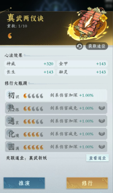 在法宝选择好了以后,就需要去选择修行的心法了,心法的话优先选择可以加剑系神通伤害的心法,和可以给到法宝伤害加成、可以提高神威属性的心法,其次再考虑拥有减伤、金甲和长生属性加成的心法,这么选择后剑修之路将会圆满,大家将会成为强大的剑修玩家。
