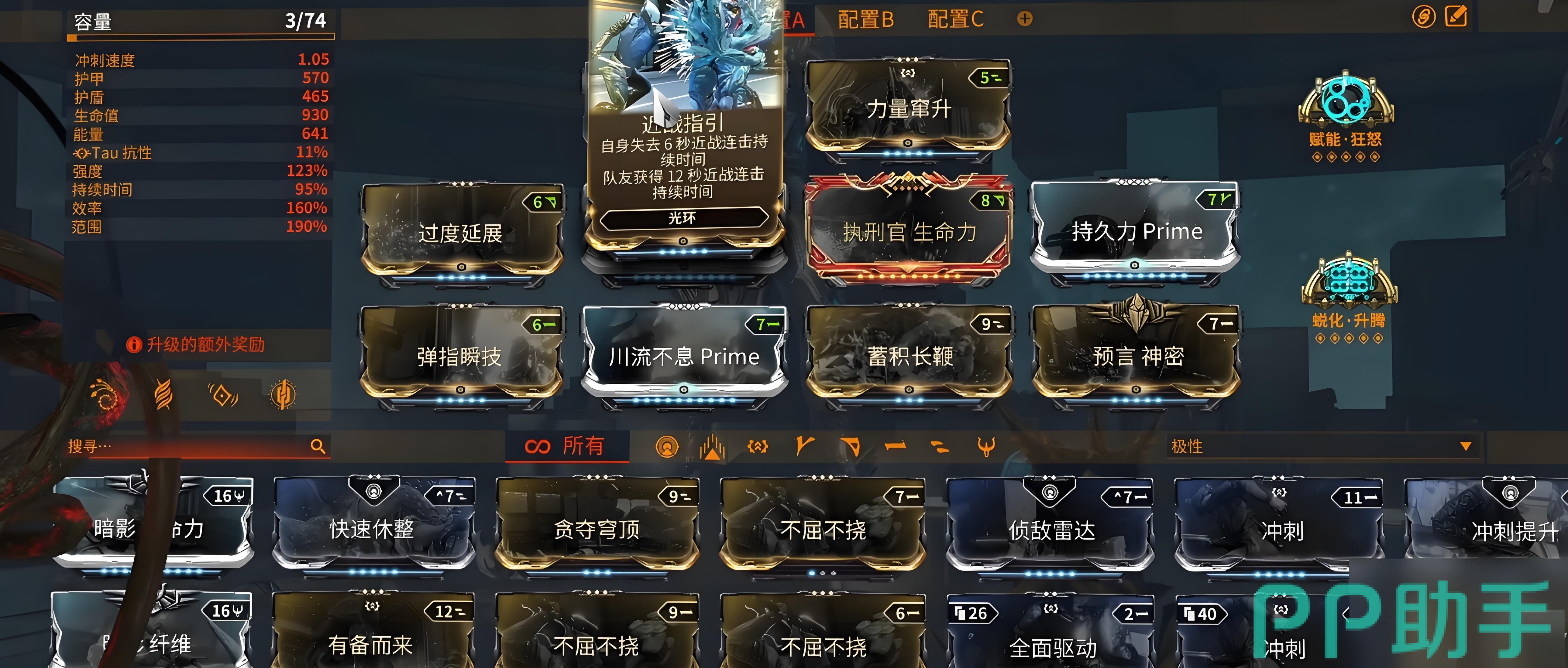 赋能上面选择了狂怒和蜕化升腾,狂怒主要给近战增强伤害,蜕化升腾可以使技能的强度得到进一步的增强。