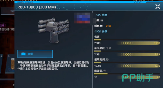 这是一个性能非常独特的火箭弹,主要的优点就在于可以无视防空。单轮爆发伤害就可以直接高达36,000,而且整体的机制和伊卡拉拉非常的相似,就属于一个火箭炮助推鱼雷。