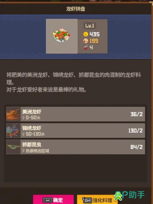 而锦绣龙虾则通常出现在更深的海域,其捕获难度较高,建议玩家在装备氧气瓶和武器升级后再前往。为了确保龙虾材料的稳定供应,玩家还可以通过养殖场进行繁殖。当三个养殖池同时运作时,龙虾的获取速度可以大幅提升,为龙虾拼盘的大批量制作提供保障。