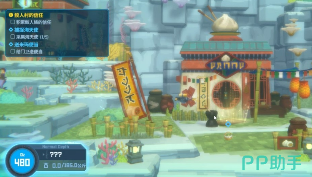 接着是寻找物品的任务,比如找孩子们丢失的球。你需要前往蓝洞区域并击败一只巨口鲨,才能获得孩子们的球并完成任务。类似的,还有寻找特定珊瑚材料的任务。例如,为铁匠制作珊瑚粥,需要搜集羽状珊瑚和莲状珊瑚,材料分布在深海不同深度。找到材料后,还需返回寿司店制作粥,然后送回铁匠铺完成任务。