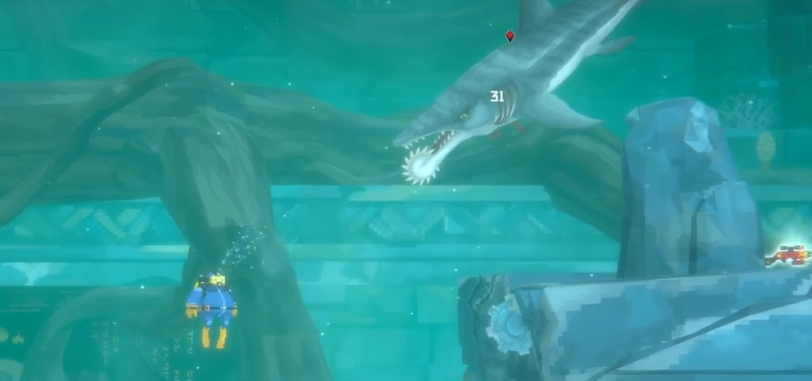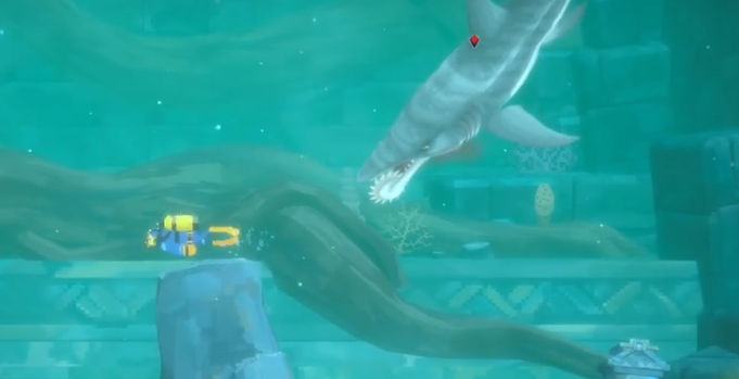 旋齿鲨的战斗分为两个阶段,每个阶段都有不同的特点和应对策略。在第一阶段,旋齿鲨的血量高达445点,不过好在攻击频率较低。它的主要攻击方式是直线冲撞,速度中等,很容易通过灵活走位躲开。在这一阶段,建议玩家控制戴夫,将旋齿鲨引导至建木果实附近。苏万则需要迅速敲击果实,制造硬直效果,对鲨鱼造成大量伤害。重复这一流程,就能稳步削减旋齿鲨的血量。