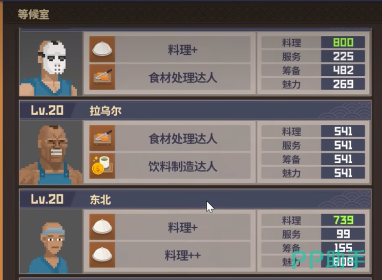 除了上述的主要员工,还有一些特殊员工同样值得我们关注。树虽然初始招募仅需1金币,但他的服务和魅力属性非常强,能够在大堂中发挥重要作用。派则是一个全能型员工,性价比高,适合用作过渡员工,特别是在前期,他的解锁菜谱能让你有更多的选择,助力餐厅的快速发展。