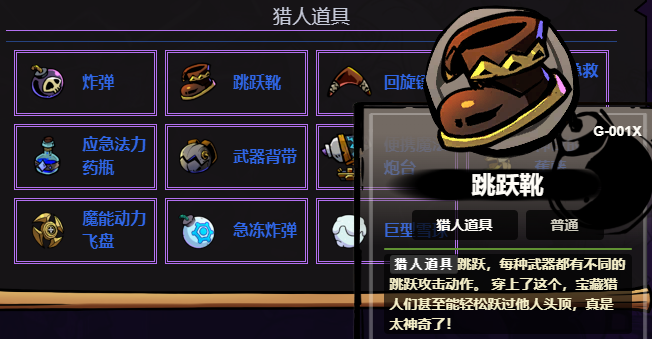 算是猎人的专属道具了,穿戴后可以增加跳跃的能力。