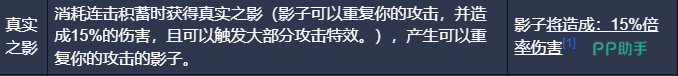 真实之影:消耗连击点数时生成一道攻击残影,造成一部分伤害并触发大部分攻击特效。真实之影相当于为玩家提供了一次额外的攻击机会,不仅增加了伤害输出,还能触发各种攻击特效,提升整体战斗力。