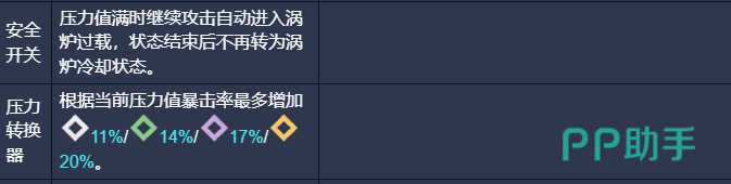 压力转换器:可以根据当前压力增加暴击数值,最多可以增加20点。