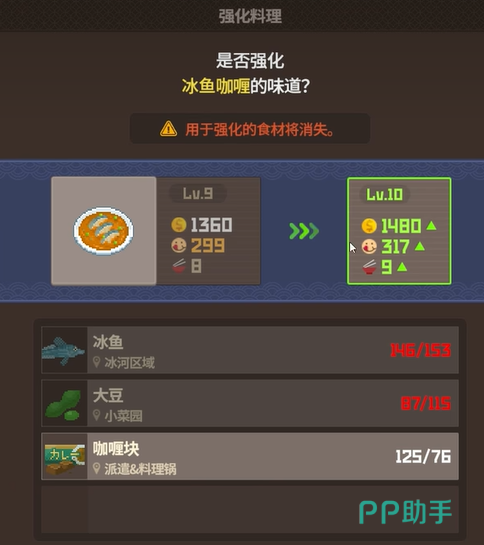 制作冰鱼咖喱需要三种主要食材:冰鱼、大豆和咖喱块。要解锁这道菜,玩家需要达到德瑞15级,同时掌握“匠人之火”技能。此外,冰鱼和大豆的获取相对容易,但咖喱块需要在中后期解锁后才能使用。因此,这道菜更适合在冰河区域解锁后集中资源来制作。冰鱼可以通过养殖场大量获取,大豆需要种植,咖喱块则需通过中后期的解锁获得。