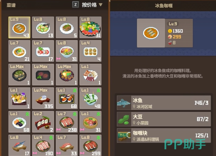 在游戏中,不少玩家对料理的选择标准颇有讲究。一道好的菜肴需要具备以下特点:获取原材料容易、售价较高、初始盘数可观、对蔬菜和调味料的需求相对均衡,同时还要兼具节日属性。以冰鱼咖喱为例,它不仅售价高达400档次,初始盘数为6盘,还具有咖喱派对的属性,非常适合作为节日料理使用。相比之下,类似南极章鱼片的料理虽然同样具有3+2+1的配比,但冰鱼咖喱无论从制作难度还是收益上,都更胜一筹。