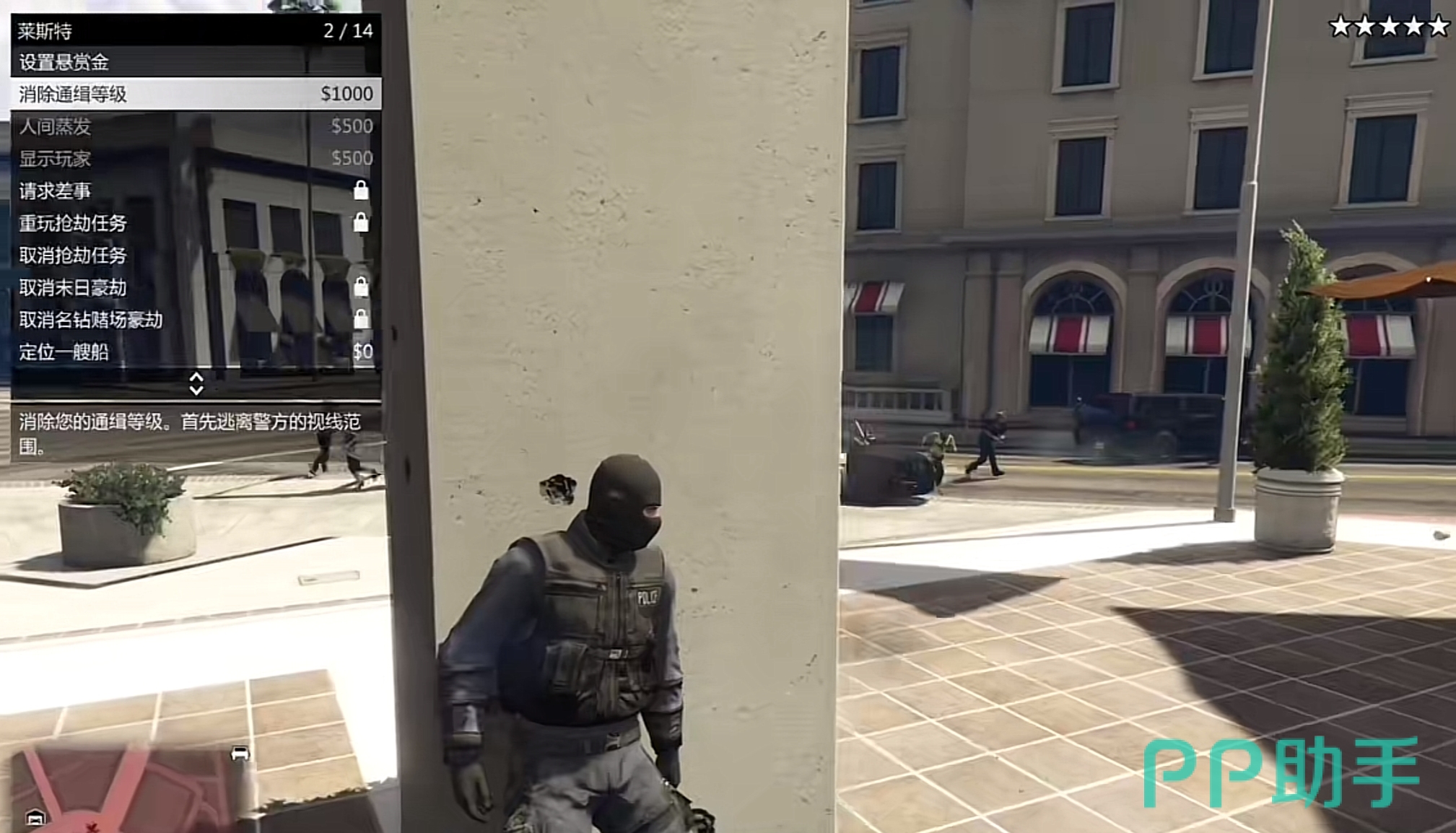 消除通缉的秘籍代码为lawyerup,输入之后就会消除一颗星,这是为了让很多玩家保持有星状态才能更好的推进后面的剧情。除此之外还有很多正规的途径,第一种就是直接打电话给莱斯特请求帮助,莱斯特会过来为我们消除通缉等级,即使已经被包围也能药到病除。