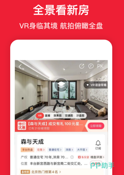 具有5颗星好评的购房平台遍布全国各地大量门店,有上万名经纪人为你服务各大城市房源以及具体的价格一网打尽。覆盖该行业中超大的数据库,拥有二手房,新房租房写字楼,无论你有哪种需求都能在这里满足。各种优惠内容提前知晓,团购打折信息全面推送帮你足不出户,寻找到好房屋。