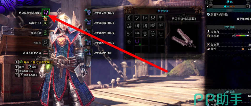 然后点击想要切换的武器装备就可以实现自动切换了。其实游戏中除了可以对武器进行修改外,还可以在坐骑上实现武器切换,也就是说通过右键就可以在坐骑身上实现主副武器的切换,这一操作模式对于很多战斗都有着非常大的帮助,不同的敌人则需要不同的武器装备来进行切换。除了这种大型的武器装备进行切换外,其实每一把不同的武器还可以完成形态的切换,在游戏当中,比如斩斧可以切换成剑模式,而这种切换方法同样是由鼠标的右键来进行灵活操控的。