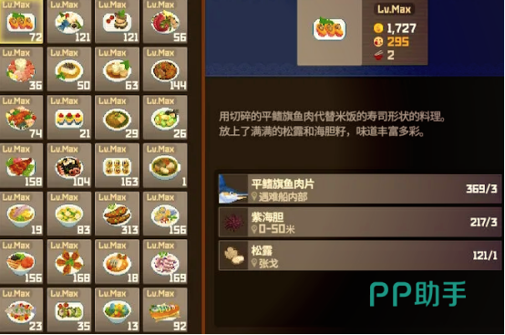 游戏中很多玩家都热衷于制作寿司,我们可以选择制作性价比极高的华美特级寿司套餐,所需要利用到的食材,包括白米饭,青条鳃棘鲈、豹纹鳃棘鲈、泰坦扳机鱼满级之后售价大概为1387元,每消耗一次食材可以做9份。