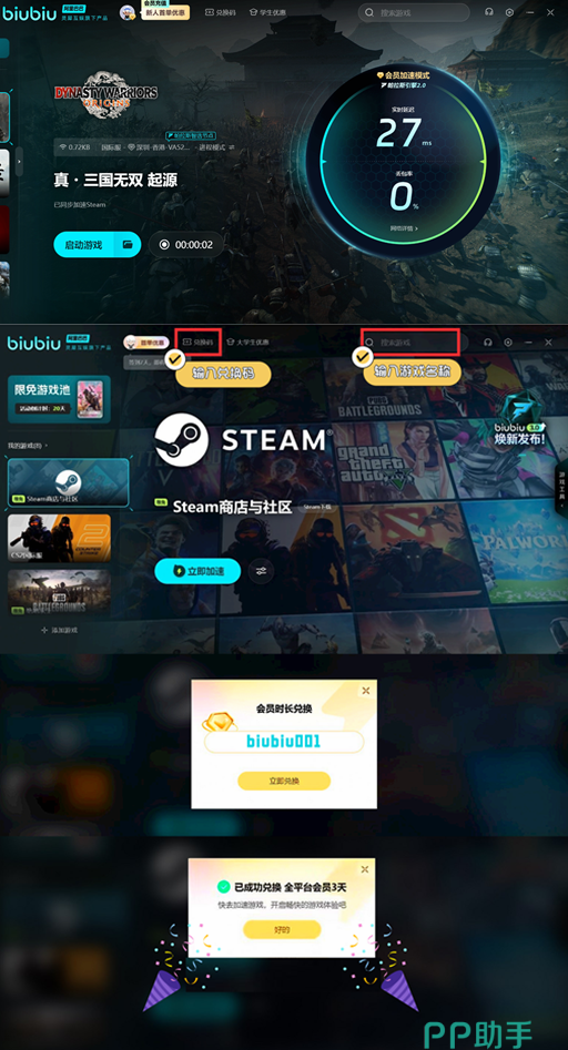 想要下载游戏的朋友,如果担心网络卡顿影响到游戏的下载,可以用一款加速器。现在加速器还可以领取免费加速服务,新用户最高叠加可以免费75小时,在注册之后有一个3小时的加速时长。在页面输入口令【biubiu001】可以额外延长72小时,如此就能带来更好的福利。