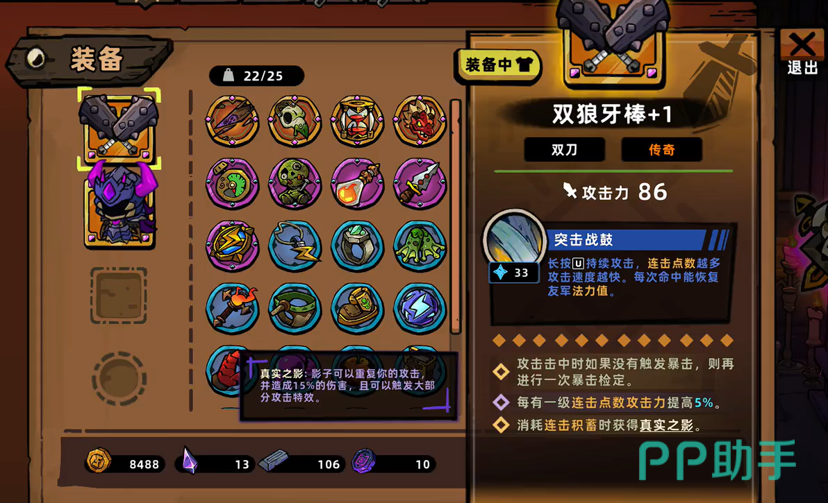 而对于新手来说双狼牙棒是一个非常合适的武器,在玩家装备之后玩家可以长按攻击来改变攻击模式,玩家攻击命中的越多提供的攻速加成就越多,同时还能够帮助玩家矫正暴击伤害,在玩家的攻击点数到达一定数量之后还能够为玩家提供攻击力加成。