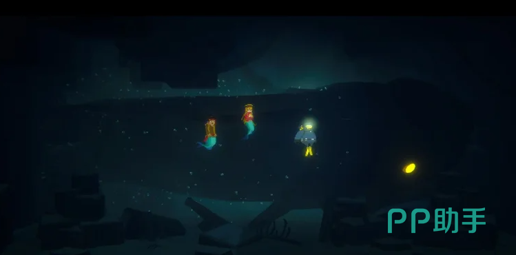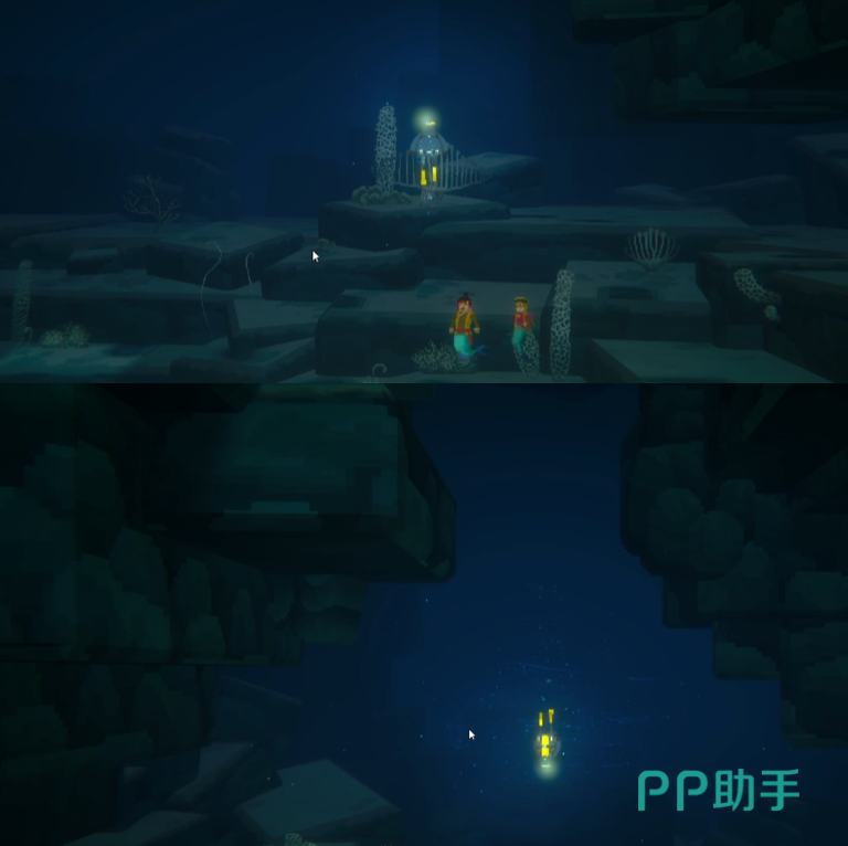 首先,要找到两个鲛人的位置,然后往上游走,先观察找到碎石堆的具体位置在哪。以图中所示,碎石堆的位置在左上方,可以看到这里有一些石堆,它们与周围的掩体是不一样的。
