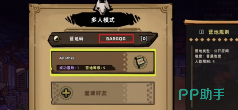 比如说挑战的难度,一般来说联机的情况下都会挑战困难模式,毕竟这样更有挑战感,接着就是人数,目前人数最多只是四个人,可以根据自身的情况减少人数,最后就是创建房间,这时候会有一个营地码,其余的队友跟着营地码就能加入房间,从而开始联机游戏。