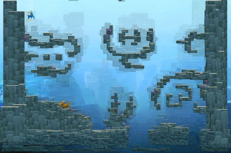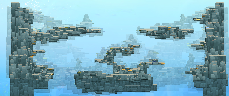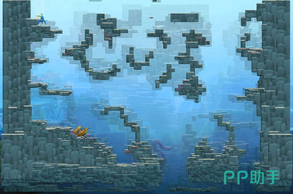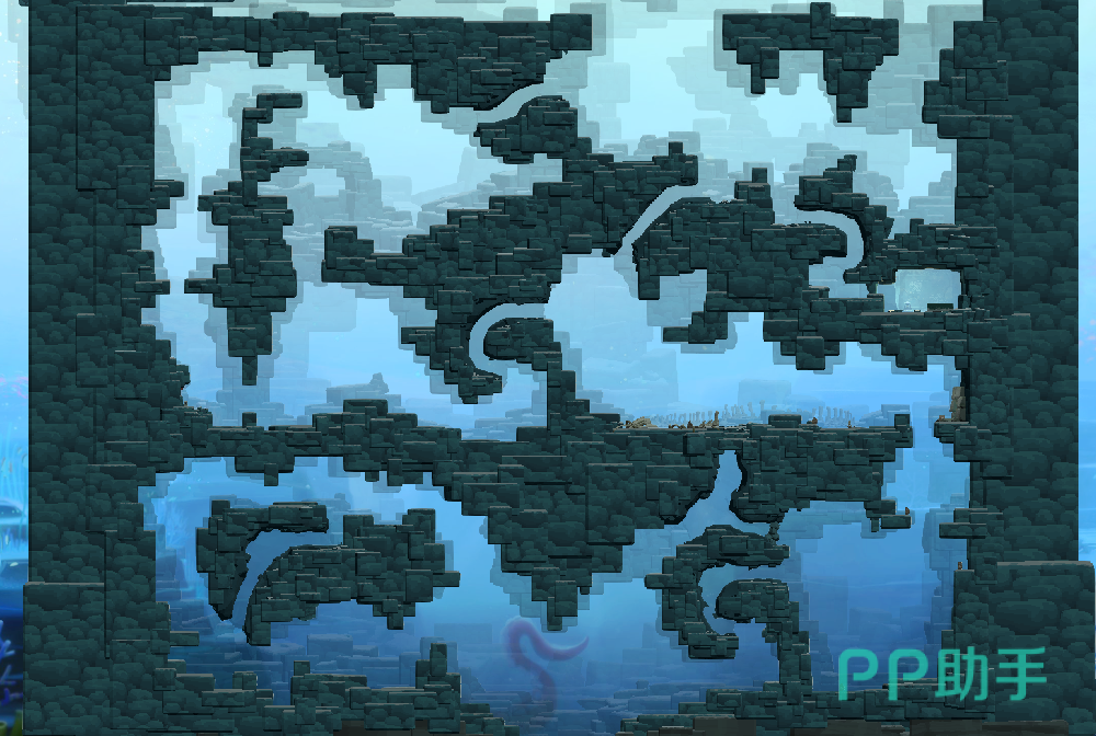 浅水区,蓝洞的表层水域,适合初学者探索,出现小型鱼类、海藻和基础资源,比如说参加龙虾派对所需要的一些龙虾就可以在这个区域的白天时间通过蟹笼获取。