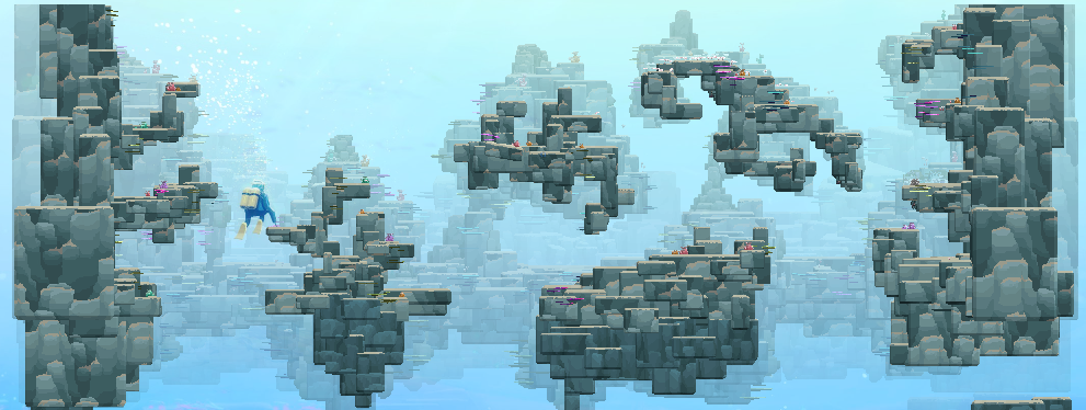 深海区域,难度颇高,有一些神秘的海洋生物,例如巨型鱿鱼、幽灵水母、狼鳗、卡车寄居蟹等等。一些任务道具和非常稀有的材料也多是分布在这里。除此之,在不同的海域里,还有隐藏一些洞穴和裂缝区域,往往藏着宝藏箱、遗物和一些独特的鱼类。