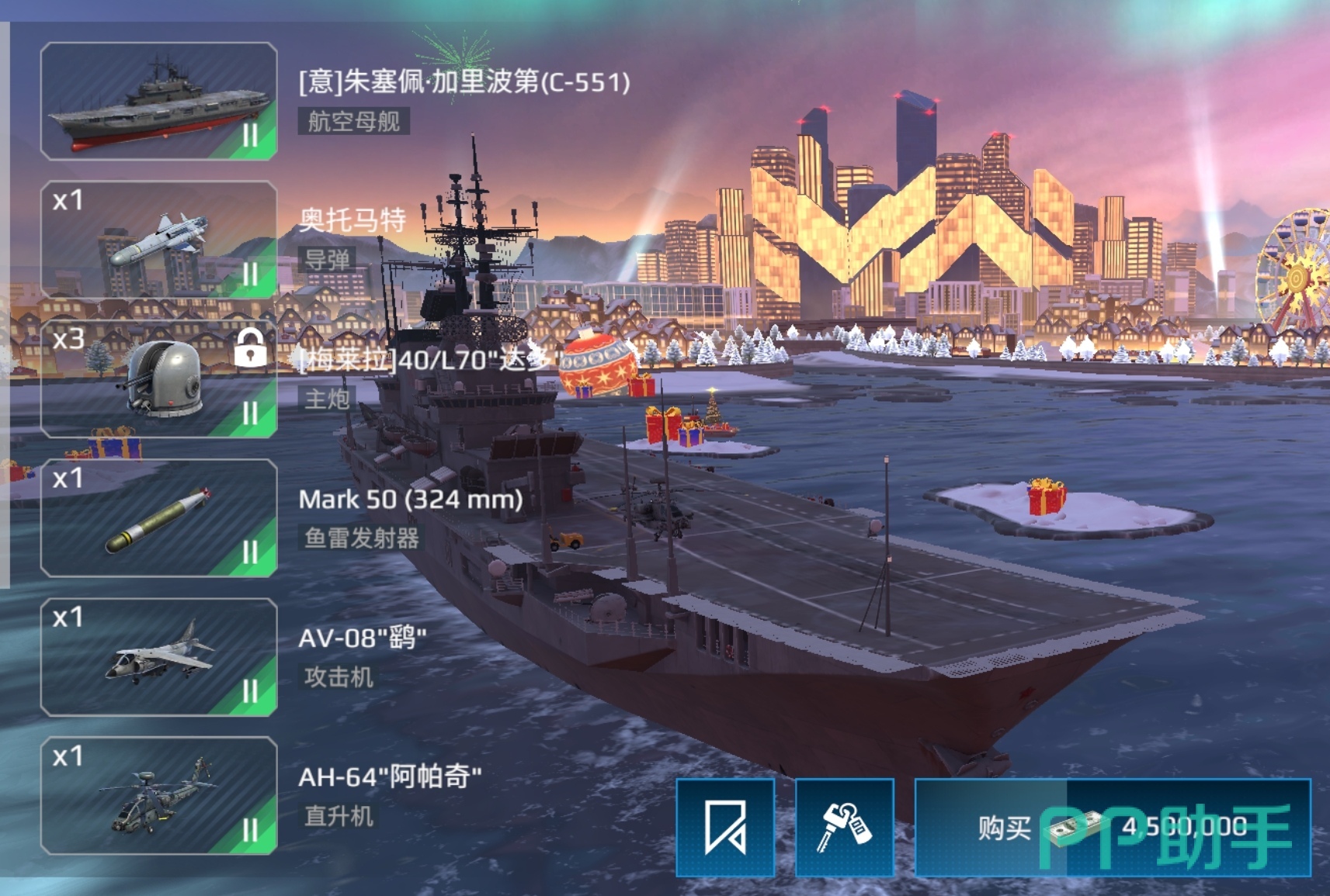 这艘航母上面搭载了梅莱拉达多型主炮、奥托马特导弹以及Mark50鱼雷发射器,具备一定的近战和防空能力,可以消灭靠近舰身的敌方舰艇,保护母舰的安全。此外,该型航母上面还能搭载鹞型攻击机和阿帕奇直升机,能够快速发现对手的潜艇和护卫舰,并对其进行有效打击,与其他同类航母相比,它的价格也不是很高,只需450万就能买到。