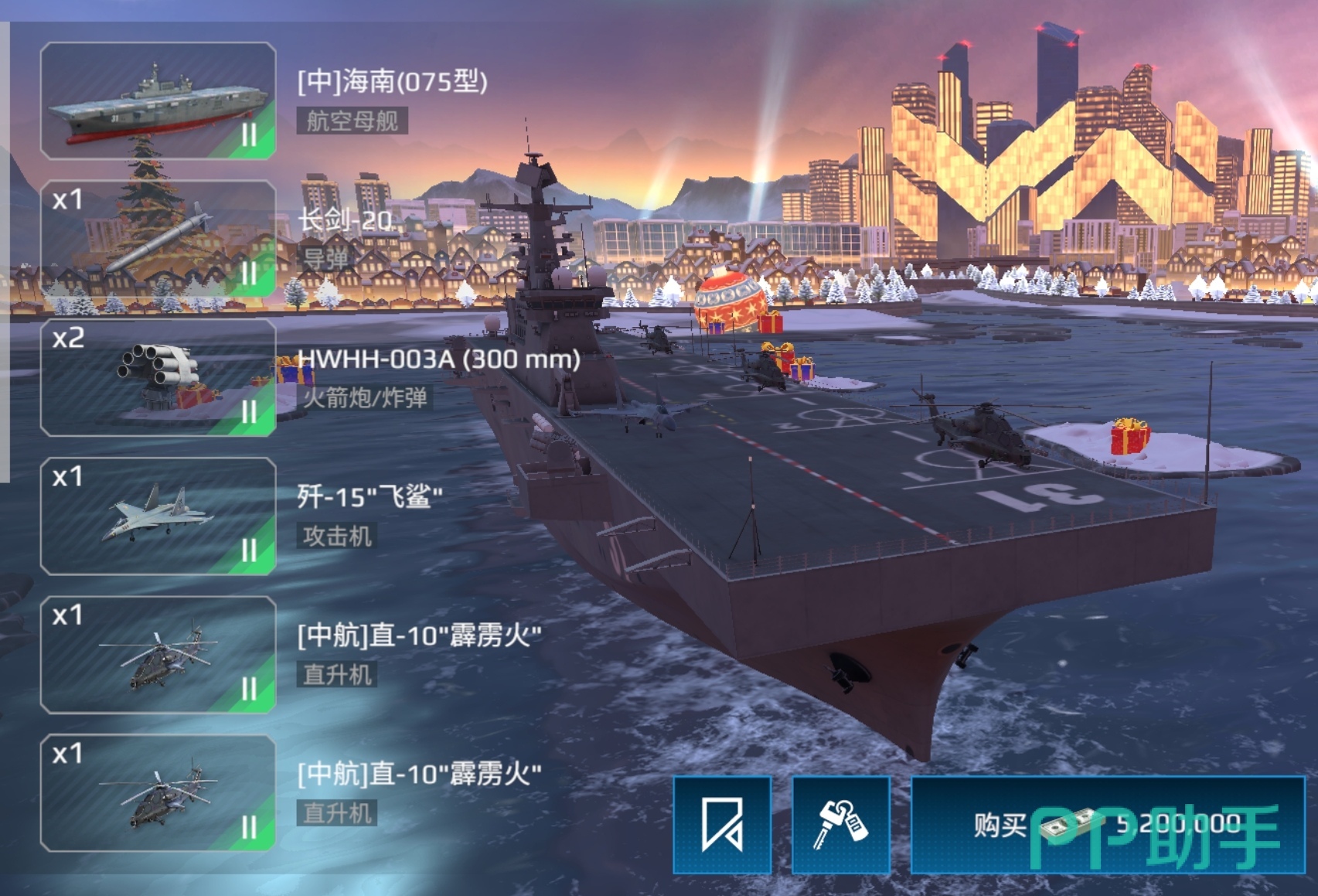 075型航母也就是海南号,上面配备了长剑20导弹和003A火箭炮两个防御武器,还能搭载歼15飞鲨和直10霹雳火等飞机,拥有不错的攻击能力。这个航母的机动性也很好,能快速抵达各个区域,上面配备的导弹,能在己方舰艇不在身边时,起到一定的防护作用。上面配备的多个直升机,能帮你完成反潜任务,提前消灭潜伏在附近的潜艇,为小队消除隐患。