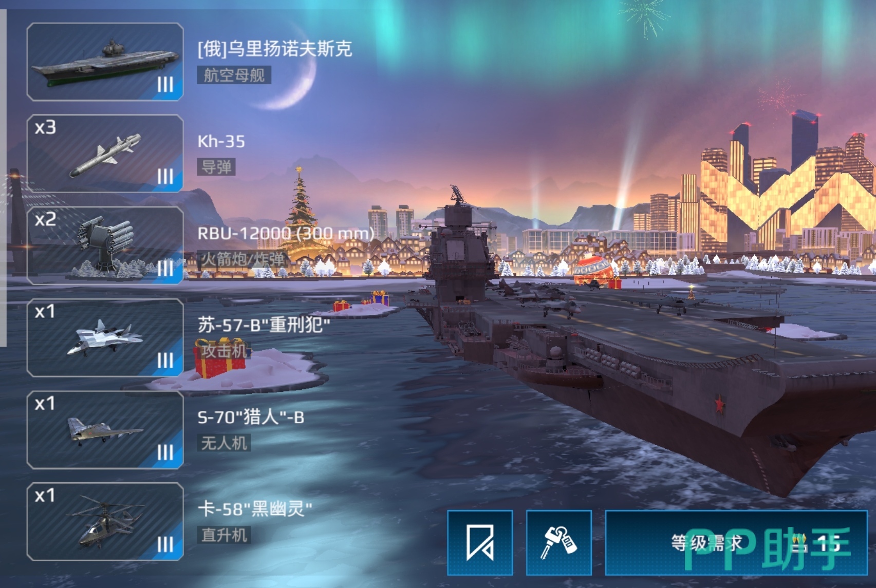 乌里扬诺夫斯克号上面配备了多种武器装备,包括反舰导弹、反潜火箭发射器和防空系统等,能够在海战中发挥重要作用。此外,这个航母上面还可以搭载多种类型的舰载机,使用它们就能执行空中打击、侦察和反潜等任务。航母上先进的防空系统和反潜武器,能够有效抵御敌方的攻击,使其在战场上能存活更长时间。