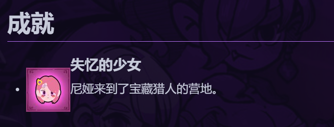 玩家们将这个npc带回营地以后会解锁一个成就——失忆的少女,后续还有几个npc的,玩家们在冒险旅途中会得到相应的信息。