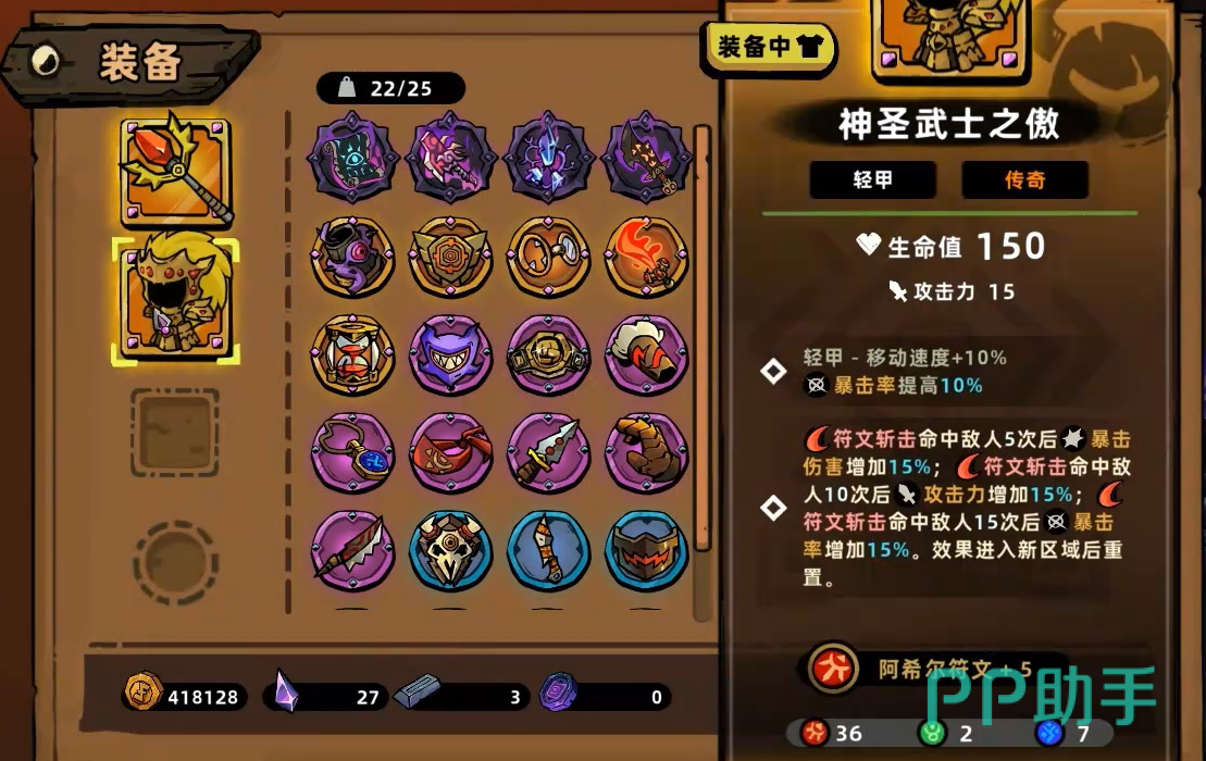 玩家在装备这件武器之后最好选择神圣武士之傲,这件防御装备能够提高玩家的暴击率以及移动速度,帮助玩家在战斗的时候能够更好的躲避敌人的攻击。