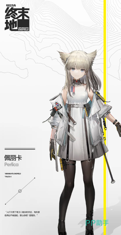 佩丽卡是工业的监督,负责依照领导者的计划,指挥并落实相关的工作,她能够非常果断冷静的应对各种危机,虽然需要经常奔波在各个据点,但为了组织的平稳发展,她一直是竭尽全力的,佩丽卡是一个近战类角色,拥有强大的单体攻击,她的技能协议雷击,能在对敌人形成高额脉冲伤害的同时具备破韧效果,再加上被动能在一定条件下提高能量的生成概率,使得其作战能力能不断增强。